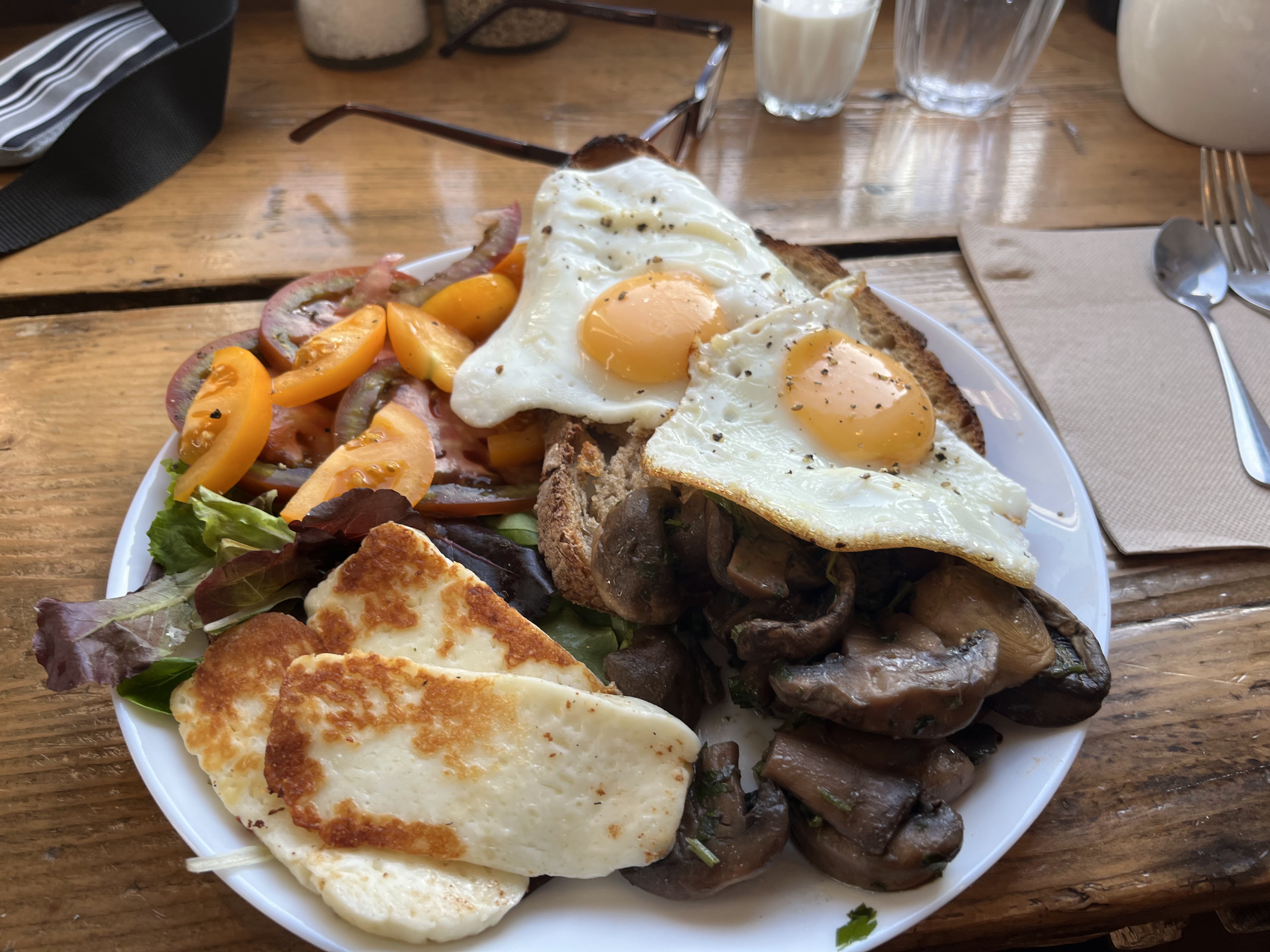 Service très sympathique et rapide, burgers au halloumi et œufs brouillés délicieux ! Les pancakes à la ricotta sont très très bons également !